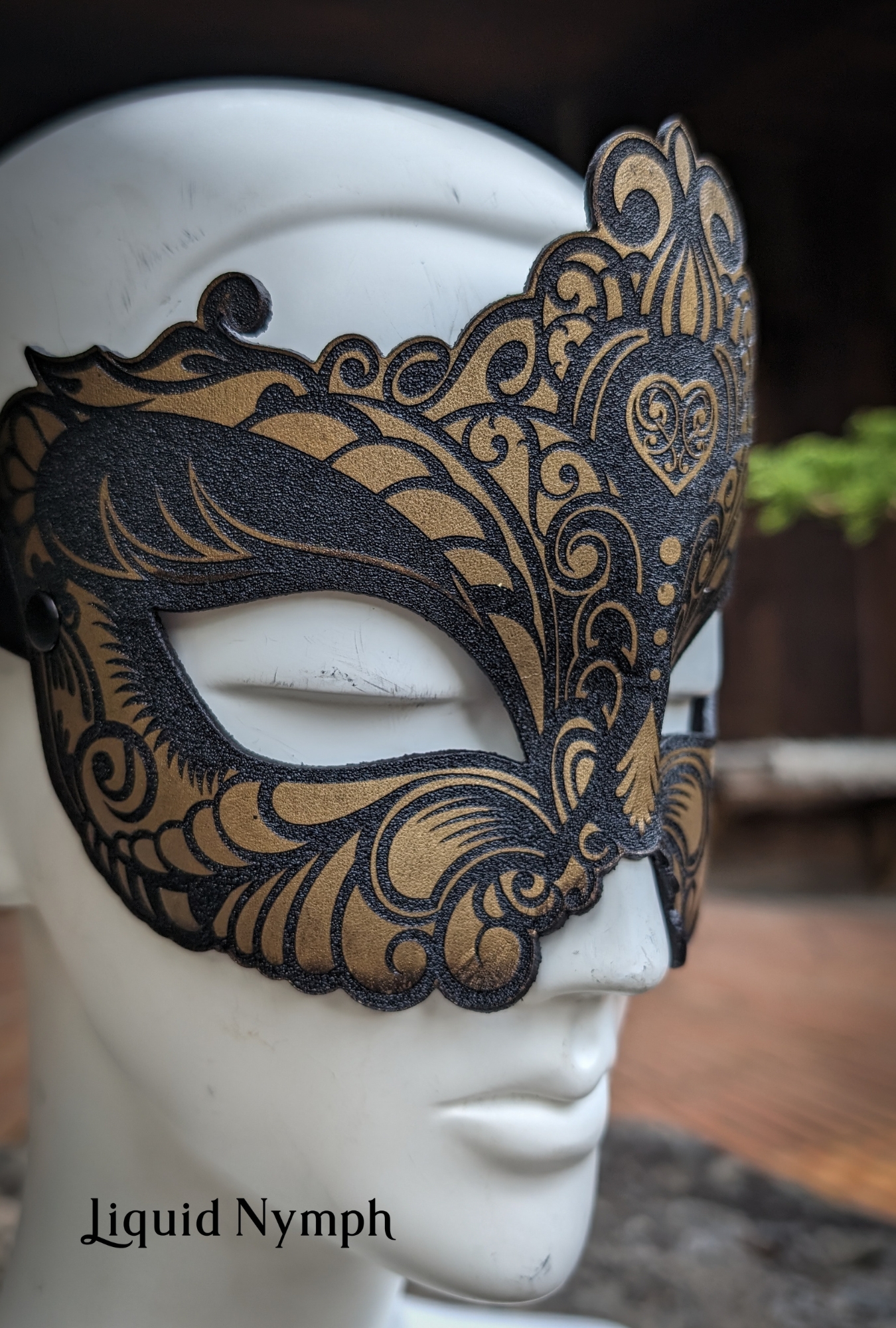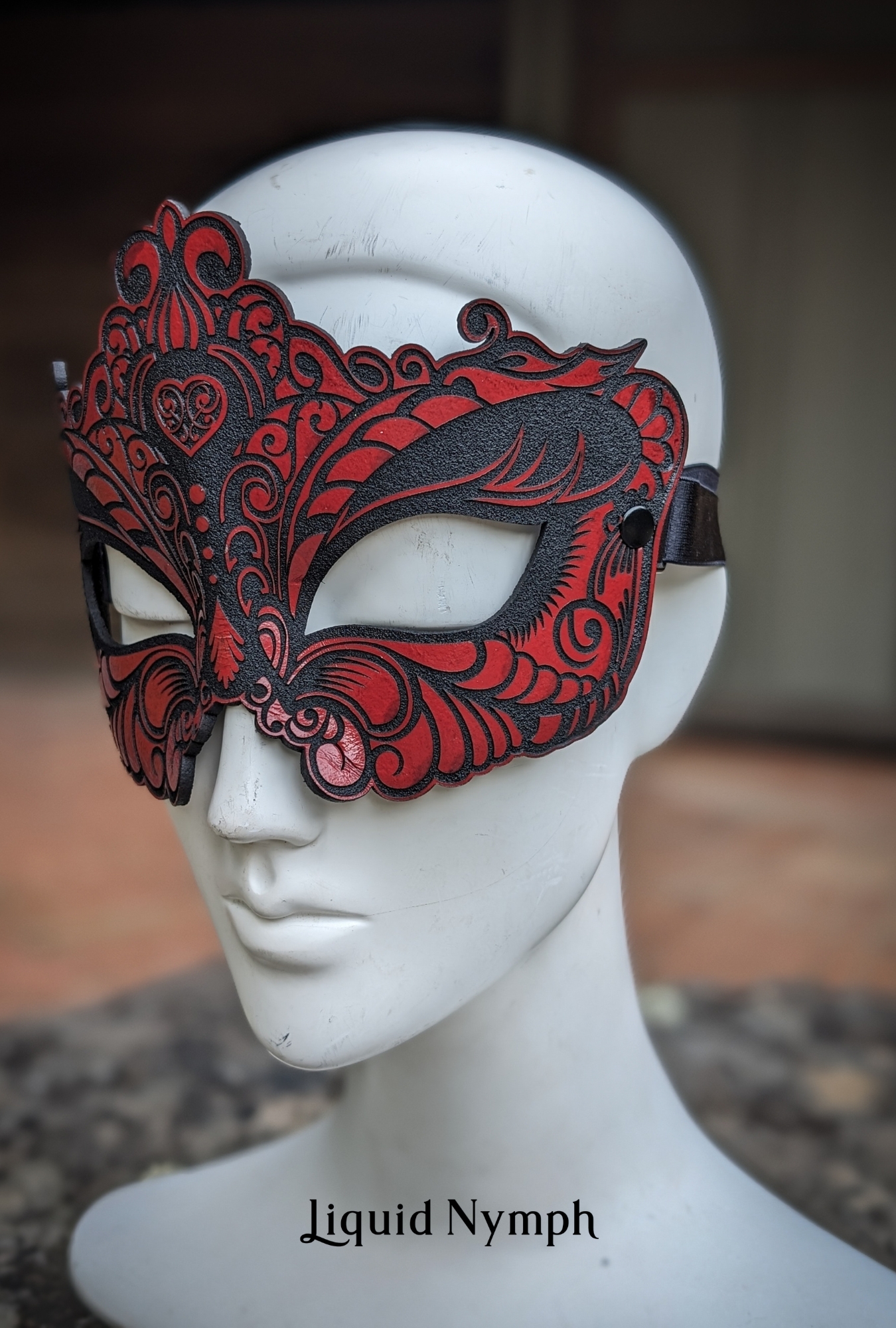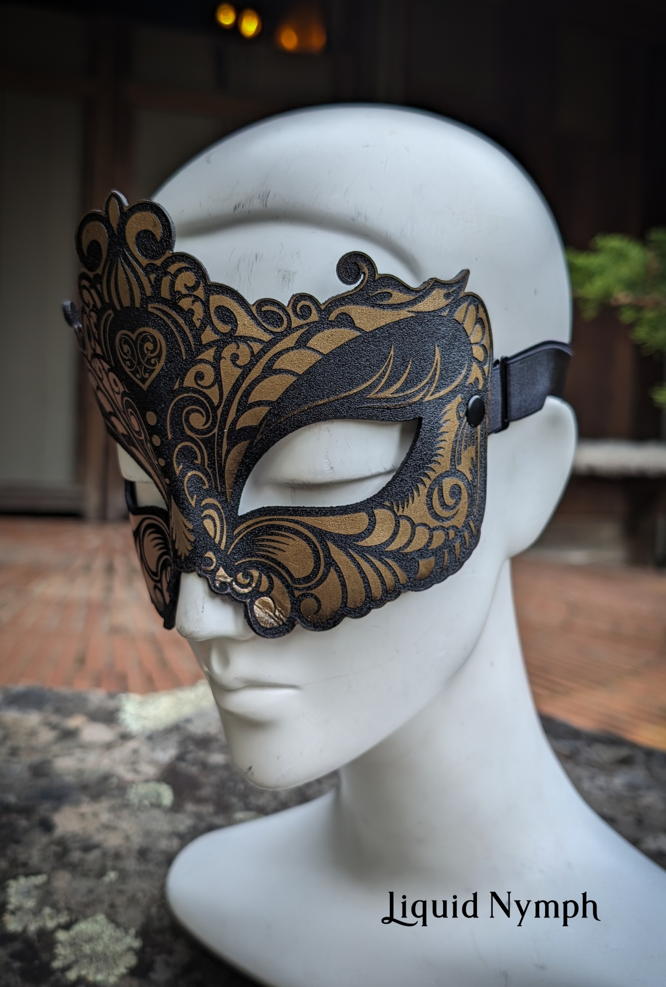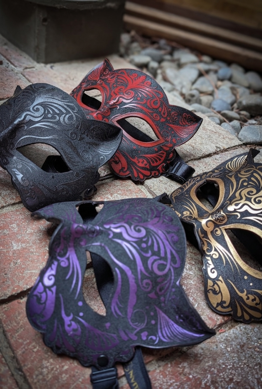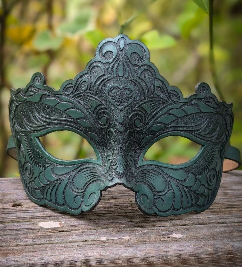 Hand-sculpted from wet-molded leather and precision laser-etched for a stunning finish, this blindfold is expertly contoured to fit the natural shape of the human face.